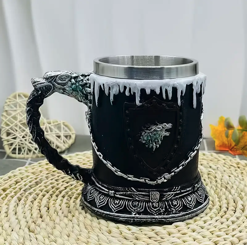 Introducing the Game of Thrones inspired Stark Wolf Mug, a must-have for any true fan of the series. Crafted from high-quality ceramic, this beautifully designed mug features the iconic Stark direwolf motif, symbolizing honor and resilience. Perfectly sized for your favorite hot beverages, it captures the essence of Winterfell and the Stark family’s legacy. Whether you’re enjoying a morning coffee or an evening tea, this mug will remind you that winter is always coming—making it an ideal gift for yourself or a fellow Game of Thrones enthusiast.