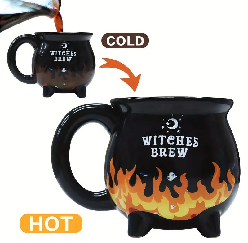 Introducing our enchanting Colour Changing Mug, beautifully crafted in a whimsical cauldron design! With charming cauldron legs and intricate details, this mug is not just a drinkware but a statement piece. Watch in awe as the mug changes colour in response to the temperature of your beverage – from a rich, dark hue when cold to vibrant, lively shades when filled with your hot favorite drink. Perfect for brewing potions, sipping your morning coffee, or entertaining guests, this magical mug will bring a touch of fantasy to your daily routine!
